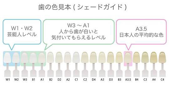 この図からわかるように、実は日本人の歯はもともと黄色っぽいという特徴を持っています。